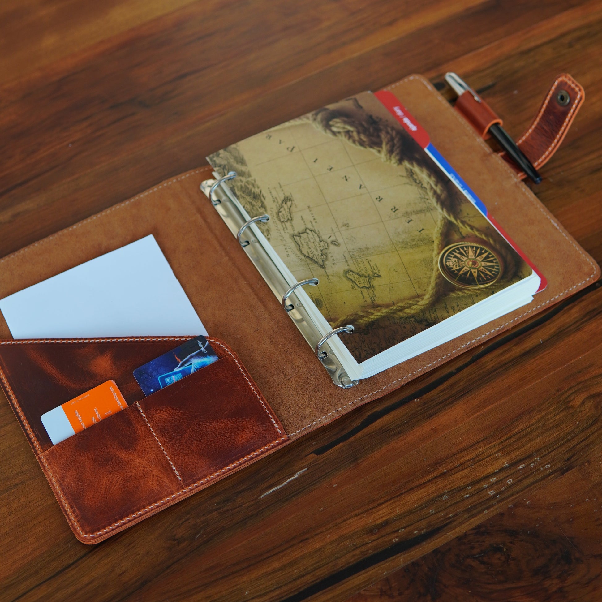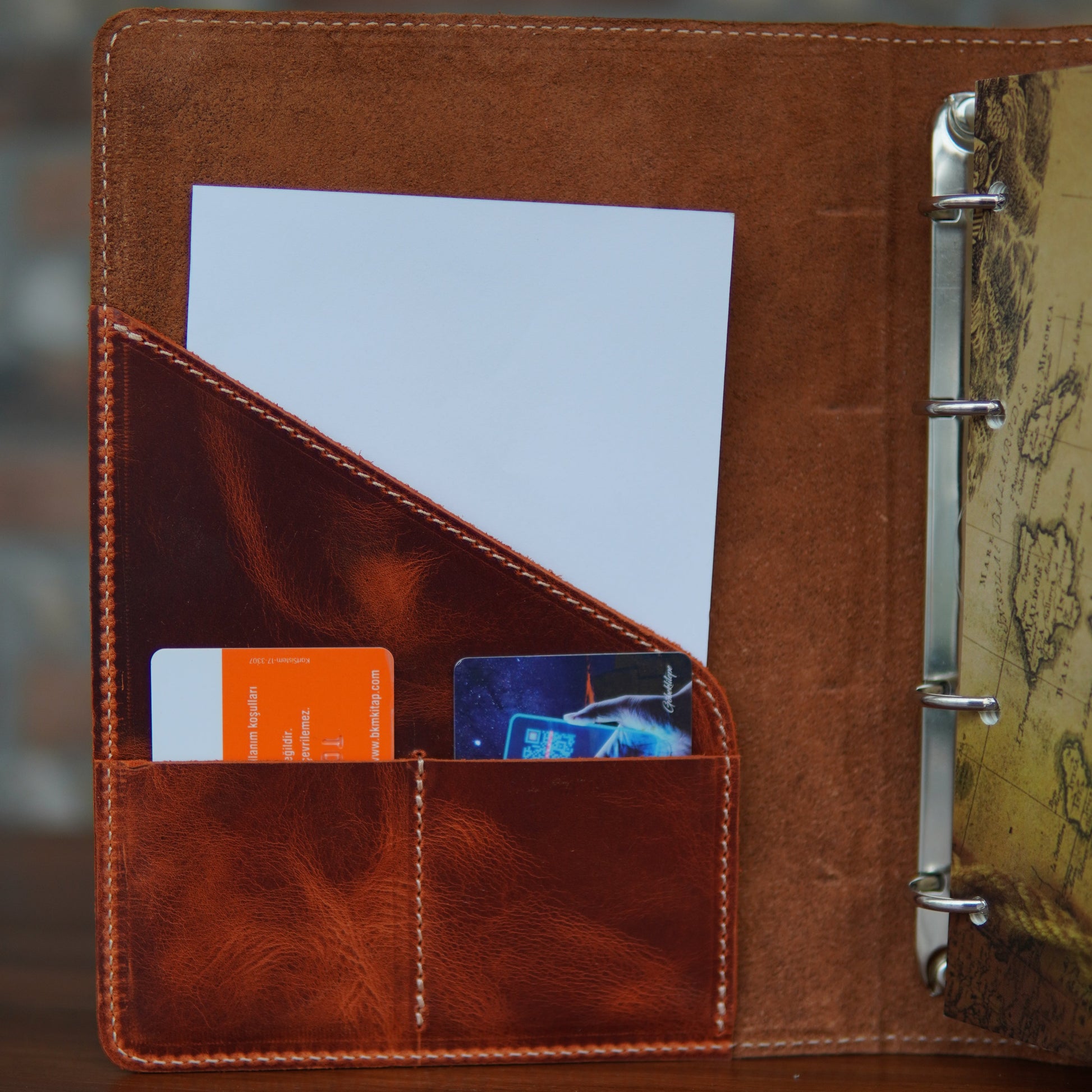 İç tasarımında değiştirilebilir halkalı mekanizma, not defteri veya ajanda kullanımı için esneklik sunar. A5 boyutundaki 4 delikli ajanda/defter yedeklerine uyumludur. Kart bölmeleri, belge cebi ve kalem tutacağı sayesinde tüm ihtiyaçlarınızı tek bir yerde toplar. Güçlü metal çıtçıtlı kapanışı ile eşyalarınızı güvenle korur.